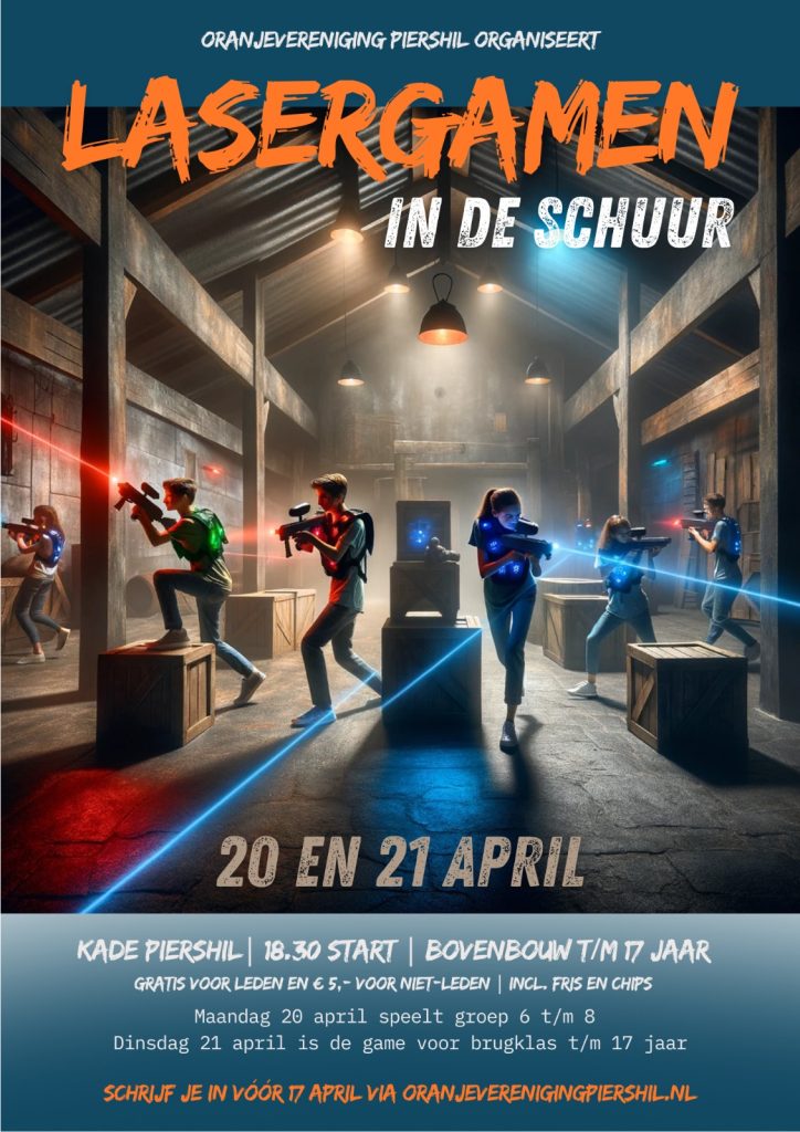 Na het grote succes in 2024 gaan we ook dit jaar weer lasergamen in de schuur – en we pakken het net zo groots, spannend en tof aan als toen! Dit jaar zelfs twee avonden.