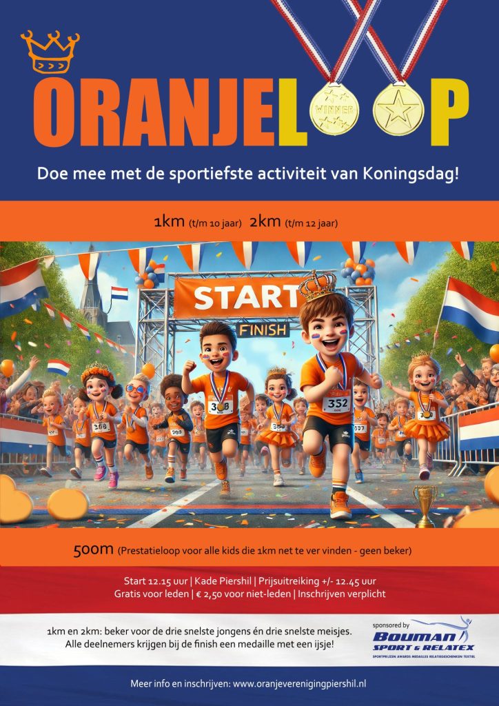 Doe mee aan de sportiefste activiteit van Koningsdag: de Oranjeloop voor kinderen t/m 12 jaar!
