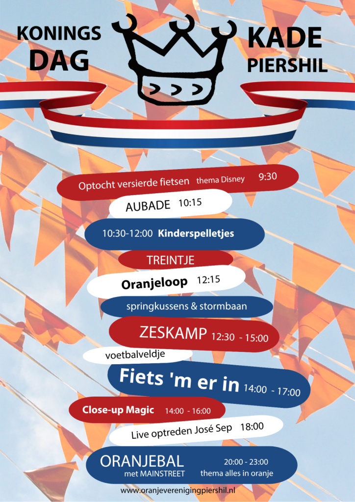 Met trots presenteren wij het programma voor de Oranjeweken in Piershil van 17 t/m 27 april!