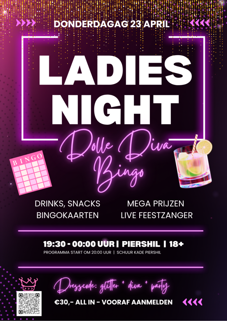 Donderdagavond 23 april is het jullie avond! We hebben een superleuk programma tijdens de Ladies Night: een dolle diva bingo én feestavond in één!